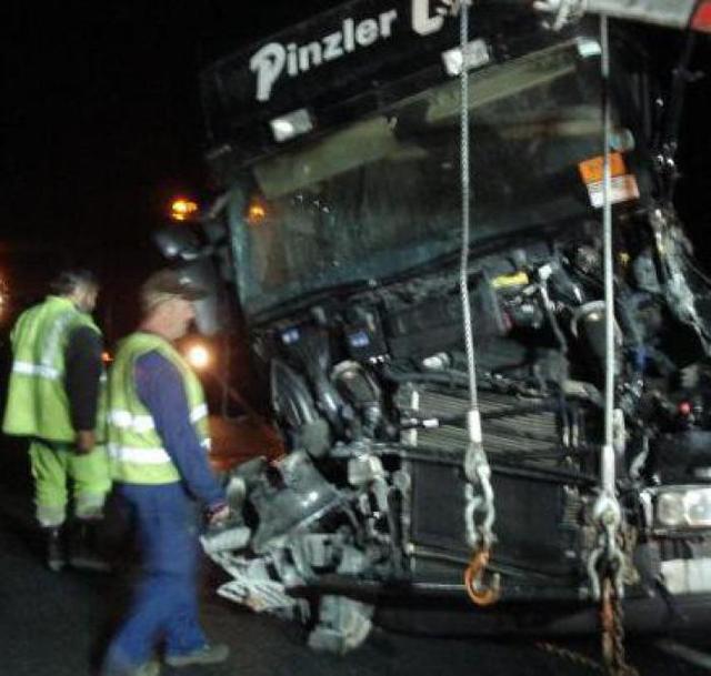 Le tracteur routier a subi de gros dégâts tout comme l’autoroute. – dr