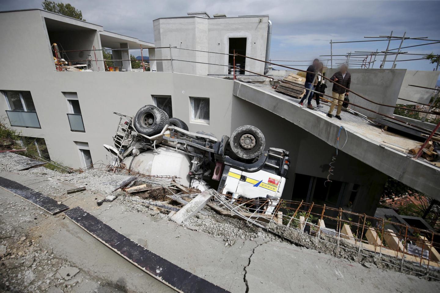 Trop lourd, le camion-toupie bascule dans le vide sur un chantier de Nice