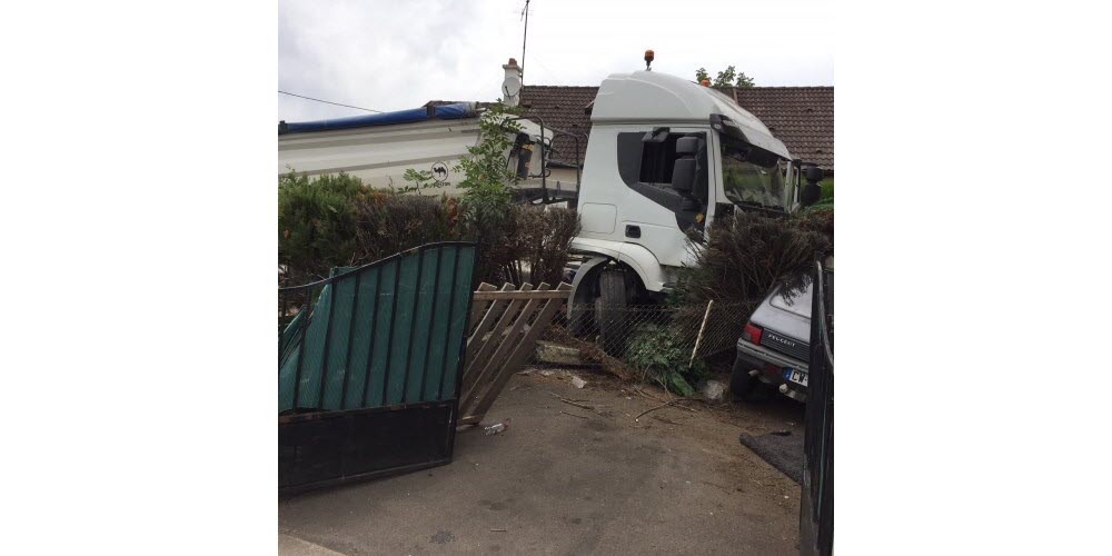 Le poids lourd a complètement arraché trois piliers et traversé la pelouse sise du 9 Grande rue de la propriété d’Hervé Lora. « Je faisais la sieste quand c’est arrivé, heureusement un quart d’heure plus tard, je voulais tondre la pelouse », confie Hervé.