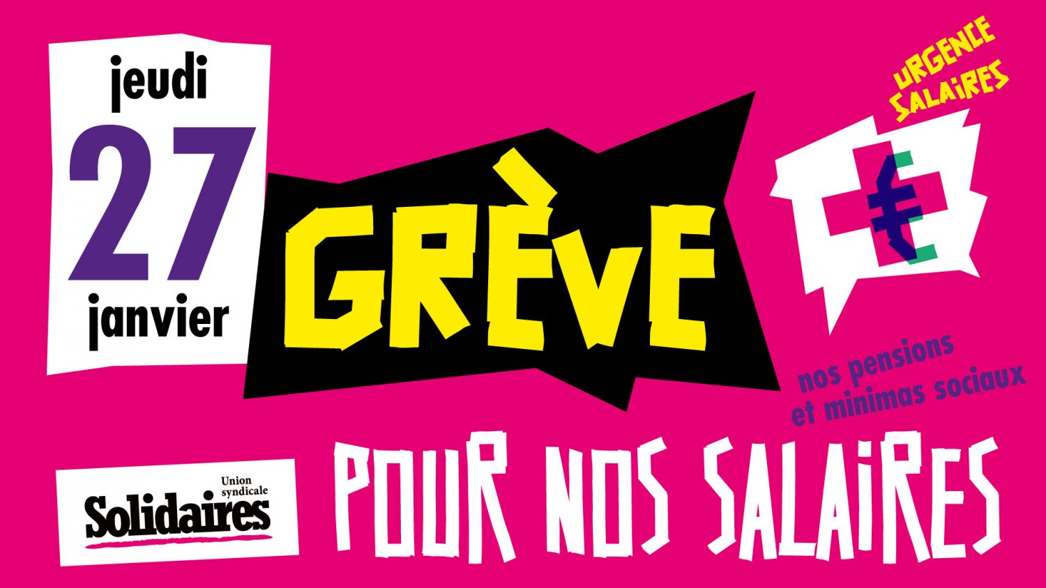 Toutes et tous en grève le 27 janvier 2022 pour la défense de nos salaires, des pensions et des minimas sociaux.