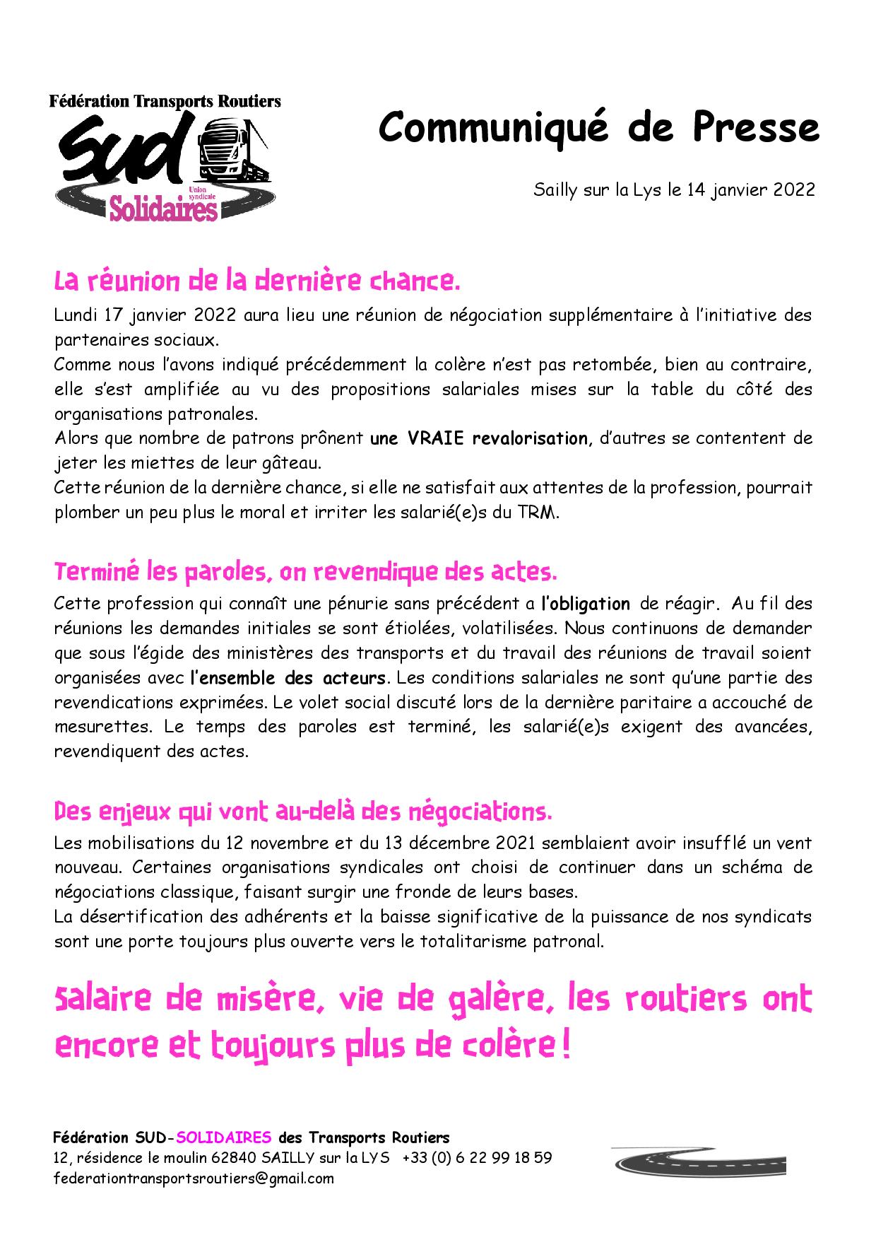 Une réunion de négociations a été programmée aujourd’hui lundi 17 janvier en visio conférence. Cette réunion de la dernière chance saura t-elle désamorcer la colère des routiers ou accoucher d’un semblant d’effort salarial…