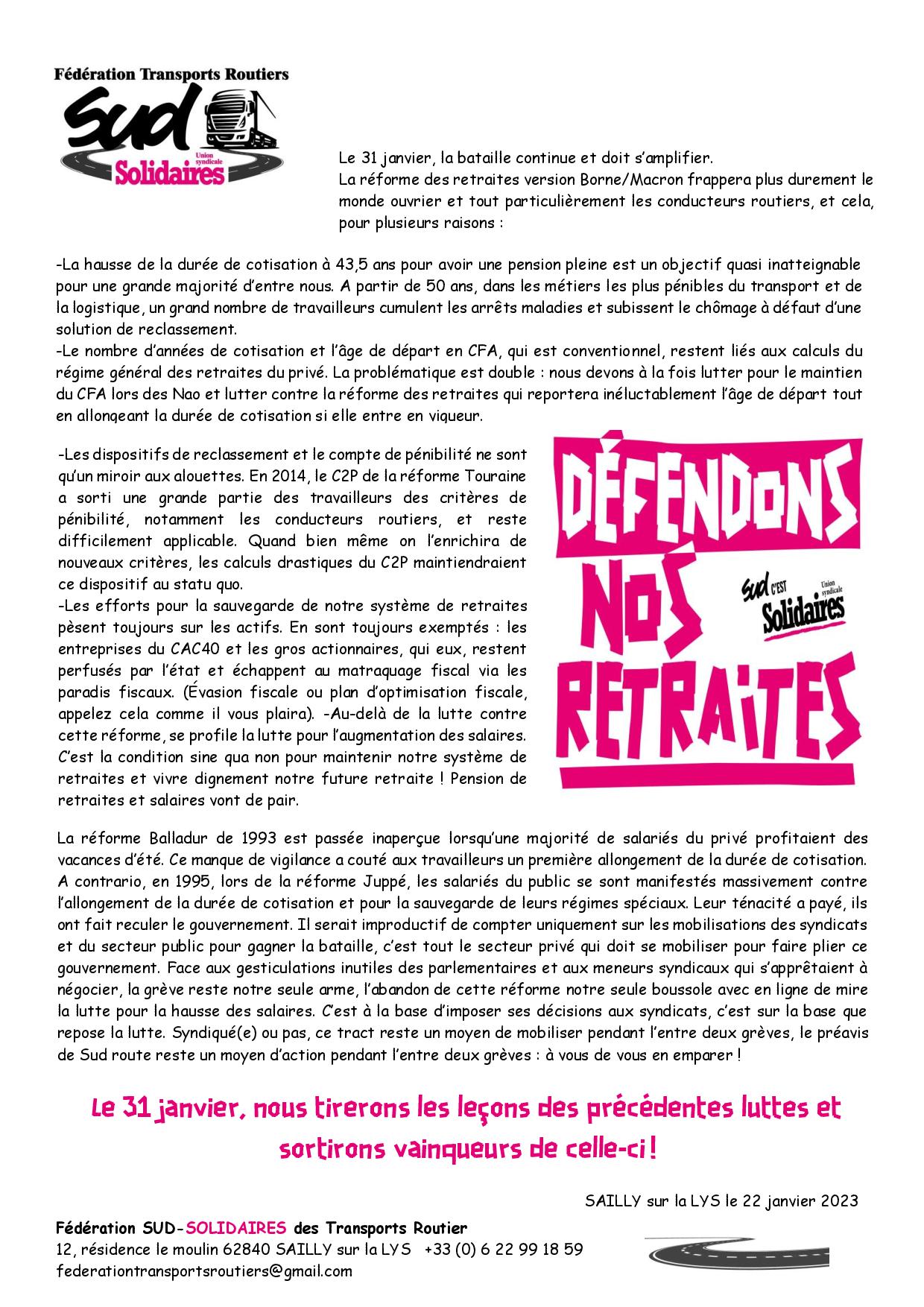 La réforme des retraites version Borne/Macron frappera plus durement le monde ouvrier et tout particulièrement les conducteurs routiers, et cela, pour plusieurs raisons. Cette bataille est la vôtre !