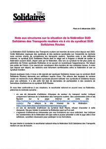 Note aux structures sur la situation de la fédération SUD Solidaires des transports routiers vis à vis du syndicat SUD Solidaires Routes.