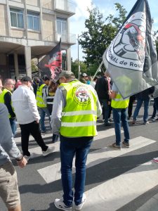 Nous sommes sur le terrain car les salariés du transport routier sont dans la galère à cause des magouilles patronales et gouvernementales qui nous appauvrissent d’année en année un peu plus.