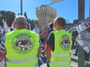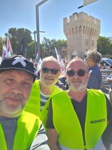 En Avignon le soleil était au rendez-vous pour la sortie du Bureau de SUDROUTE lors de la manifestation qui s’est bien passée, nombreux ont été les syndicalistes qui sont venus à notre rencontre car ils ne connaissaient pas notre nouveau drapeau.